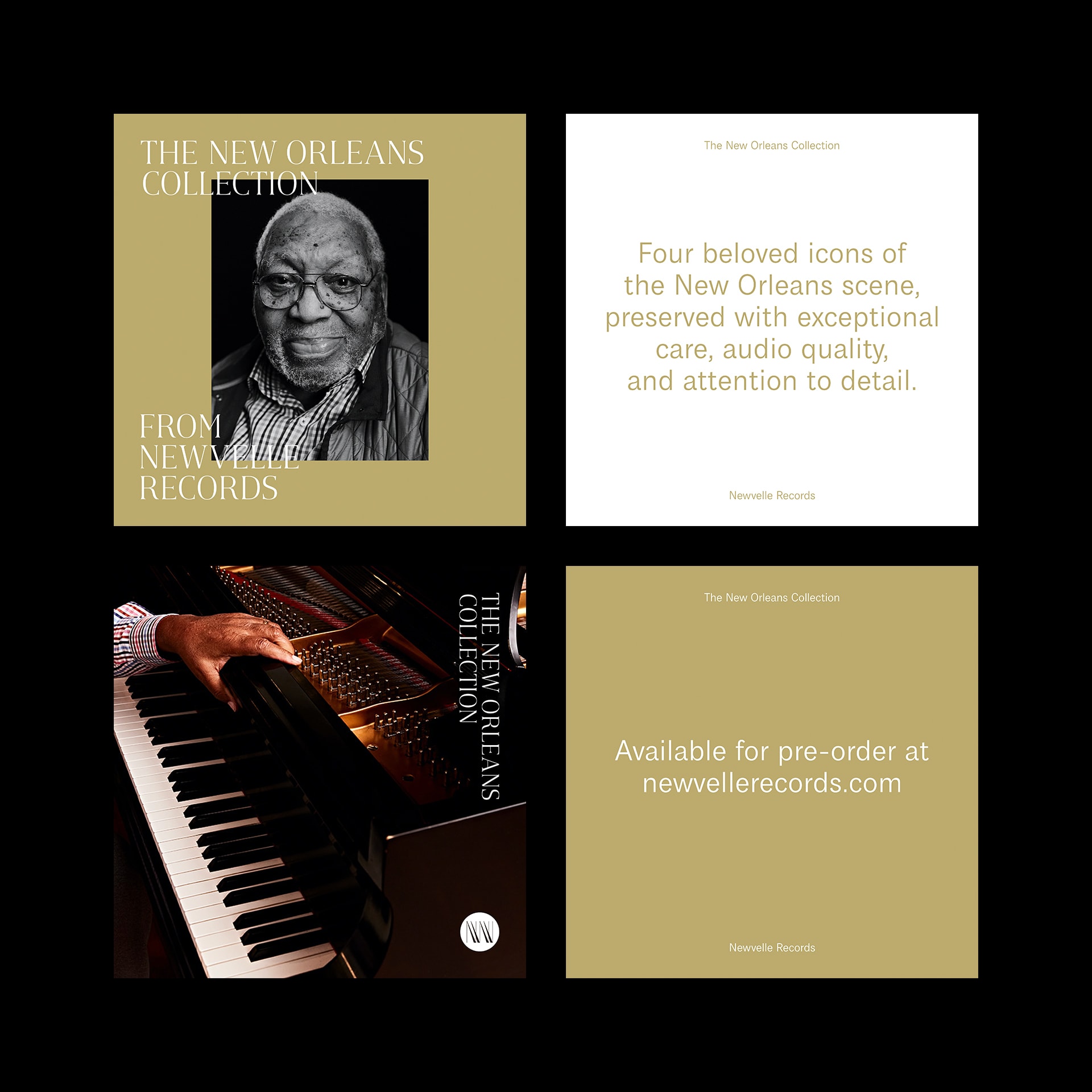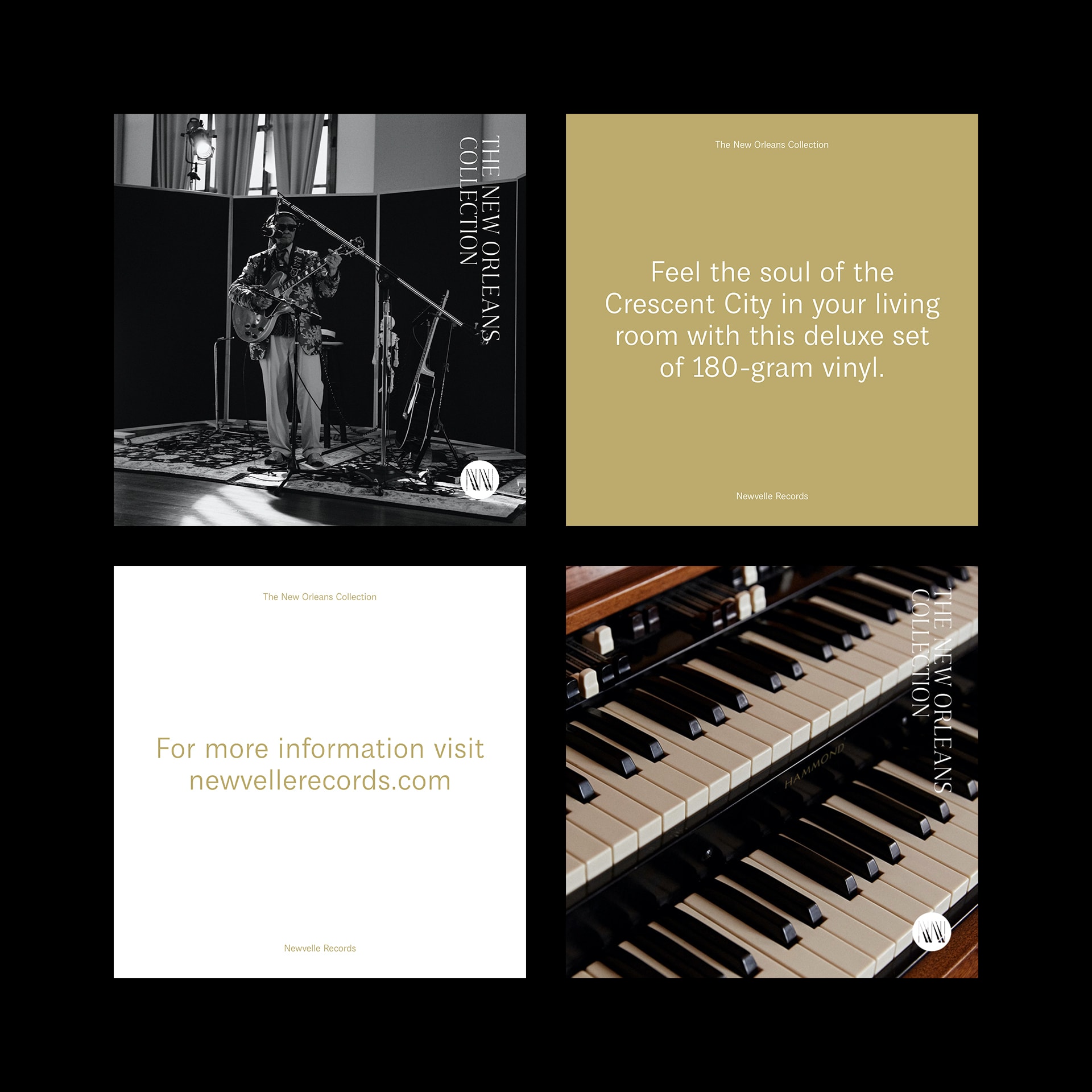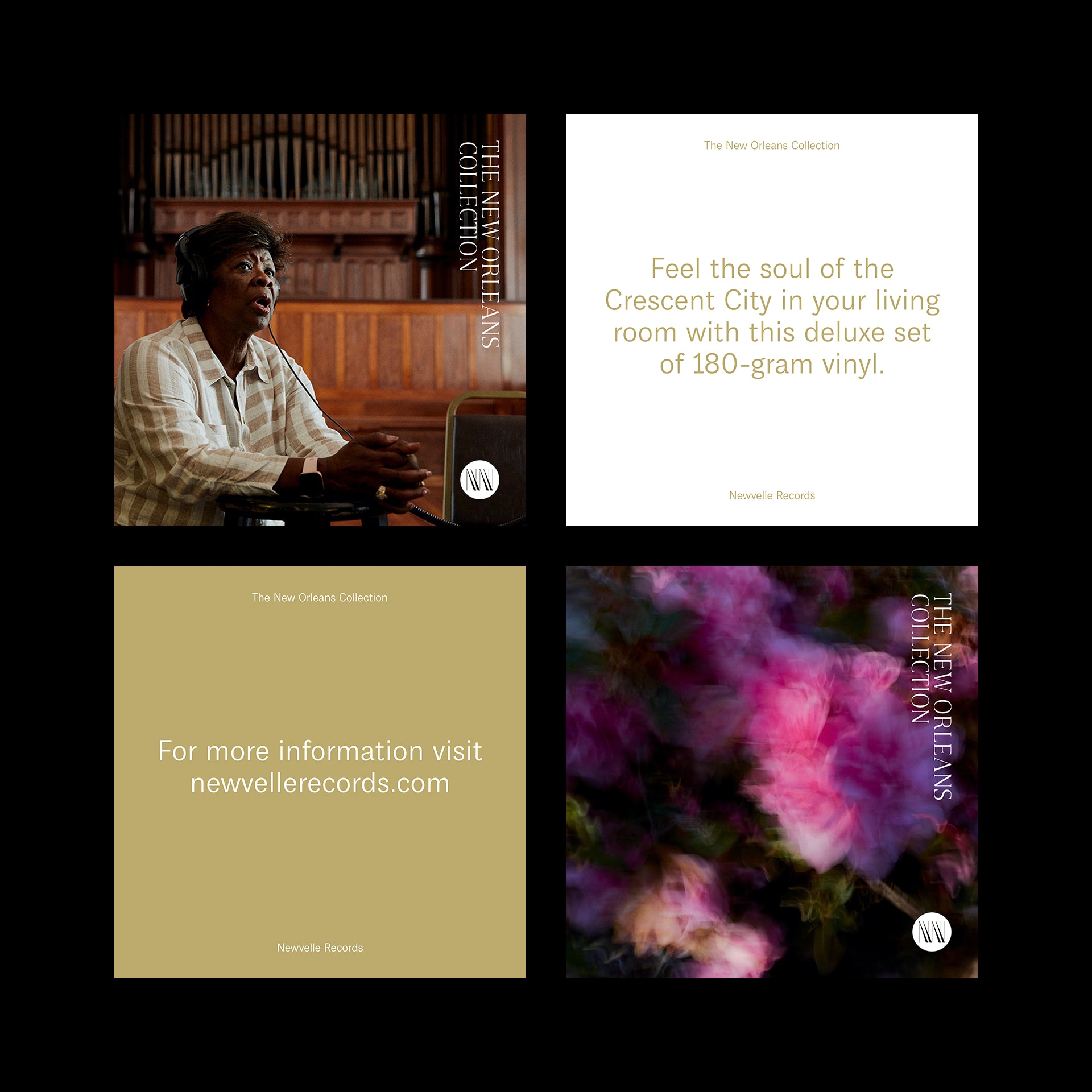 Our campaign to promote the New Orleans Collection expanded the typographic and visual language of the album covers into a diverse range of platforms. We developed digital and print ad assets, and edited video from the recording sessions for use for additional promotional materials.
